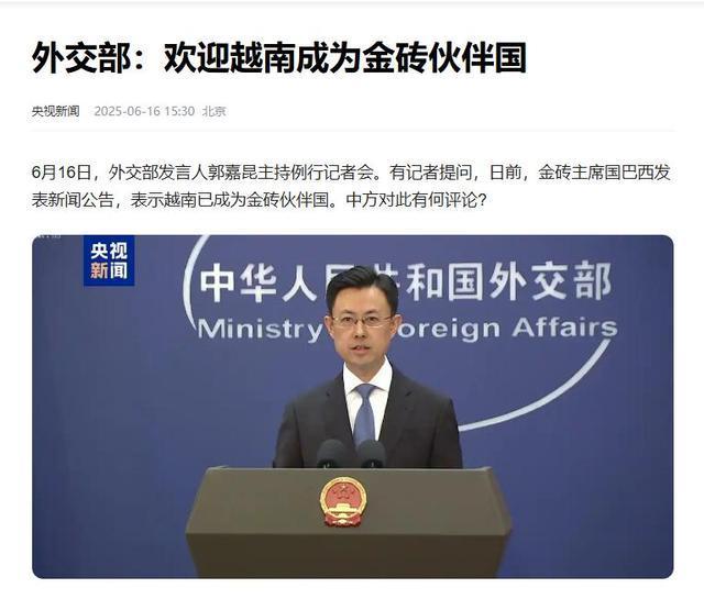 这个消息有意思的地方就在于,越南是金砖的伙伴国,而不是成员国。