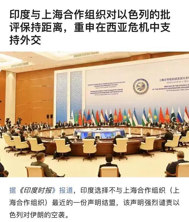 但是这里面却有一个国家跳出来唱了反调,这个国家正是印度。因为上合组织拥有包括印度在内的10个成员国,然而在谴责以色列的声明中,只有印度没有在上面签字。